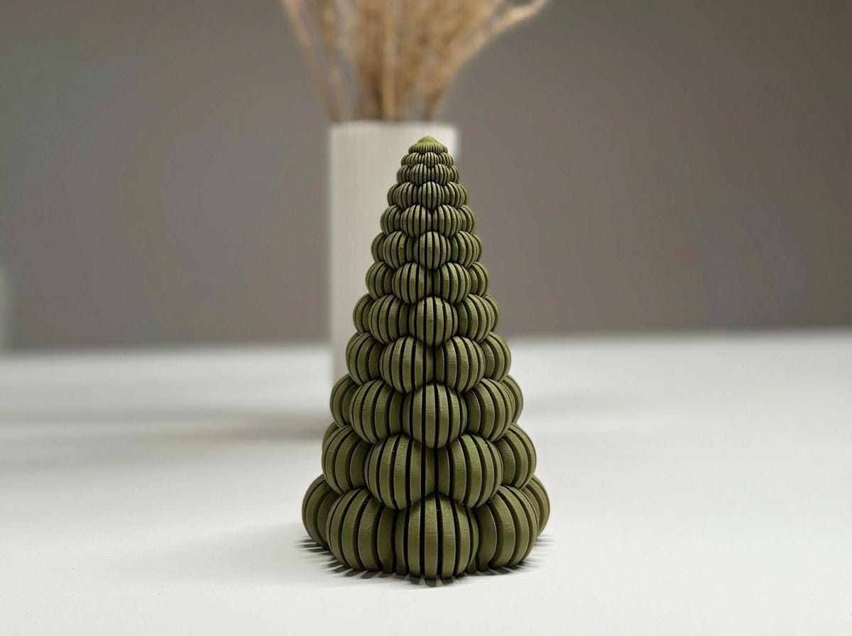 "Bubbly" Striped Christmas Tree 15 cm – Minimalist PLA Decoration (4 Colors)