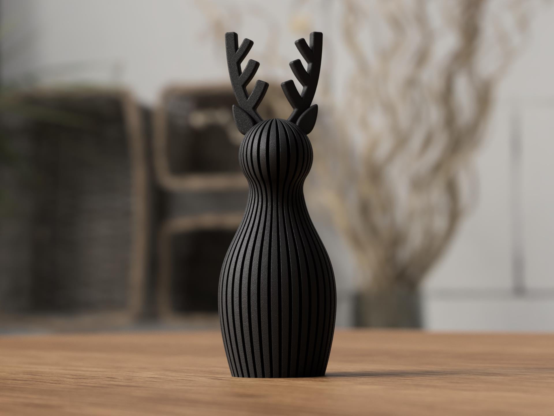 Minimal Ribbed Christmas Reindeer in PLA – Scandinavian Decoration 13.5 / 17.5 cm